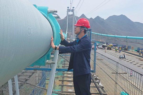 马显红介绍说,企业设计构想在2380m主缆上实现通长的温度、湿度、应力应变的自我感知和自我调控,从而提高大桥主缆的防护能力,确保其全生命期服役寿命和运营安全。最终,成功实现了在超2300m应力应变智慧主缆索股开发应用上的世界首创。