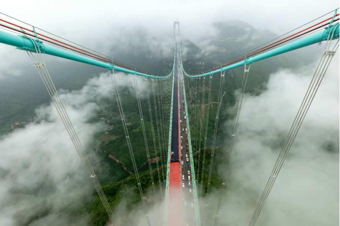 近日,花江峡谷大桥正式建成通车。花江峡谷大桥全长2890米,主桥跨径1420米,桥面距水面垂直高度达625米,相当于200多层楼高。这一高度超越了高桥北盘江第一桥(565米),成为山区峡谷桥梁的新标杆。