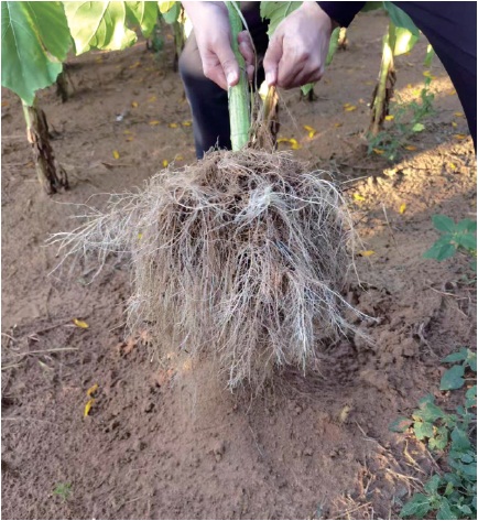 乌兰布和沙漠基地里的向日葵根系。 农民日报·中国农网记者 颜旭 摄